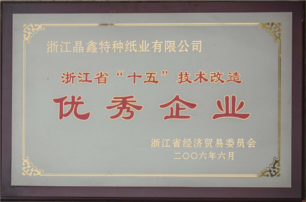 浙江晶鑫特种纸业有限公司是一家专业从事特种纸研发、生产和销售的中外合资企业,年产各种档次特种纸2万余吨,2005年被衢州市工商行政管理局评为免检企业,连续五年被金融部门评为AAA级资信企业。2006年6月通过ISO9001国际质量体系认证,同年12月份被评为衢州市科技型中小企业,2007年获得独立进出口资格,同年被评为衢州区环保信用企业。2008年、2013年度被评为衢江区明星企业。2013、2014年度工业产值、税收贡献进入衢江区20强工业企业,获安全生产工作先进企业称号。